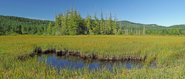 Trip Description: Lost Prairie was designated as an Area of Critical Environmental Concern in 1984 to protect 60 acres of mid- to high-elevation sedge fen, sphagnum bog, and beaver marshes in the Oregon Coast Range. The fen is seasonally flooded and supports a diverse array of vascular plants and bryophytes that are uncommon in coastal coniferous forests of northwestern Oregon. Three sparsely vegetated basalt outcroppings surround the fen, and the center supports a "habitat island" with 150-year-old conifers. Rare plants include elegant fawn-lily (Erythronium elegans), bog anemone (Anemone oregana var. felix), Indian rice (Fritillaria camchatcensis), two rare lichens (Hypogymnia duplicata and Platismatia lacunosa), and a rare moss (Tetraplodon miniodes).