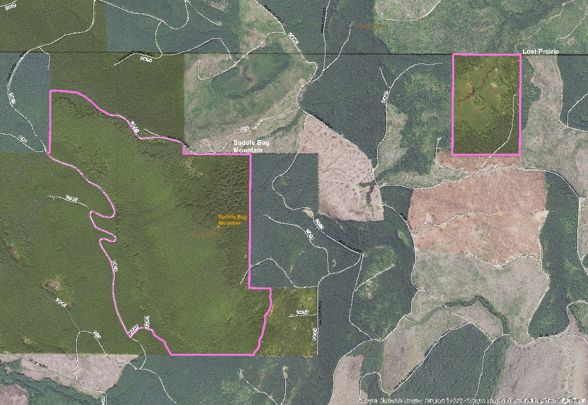 Difficulty: Easy to moderate (1 or more miles) - footing in the bog is uneven and wet in places. Lost Prairie: no developed trails, foot access by wildlife trails with dense shrubs in places. Saddle Bag Mountain: no developed trails; thick undergrowth on the edge, then open.